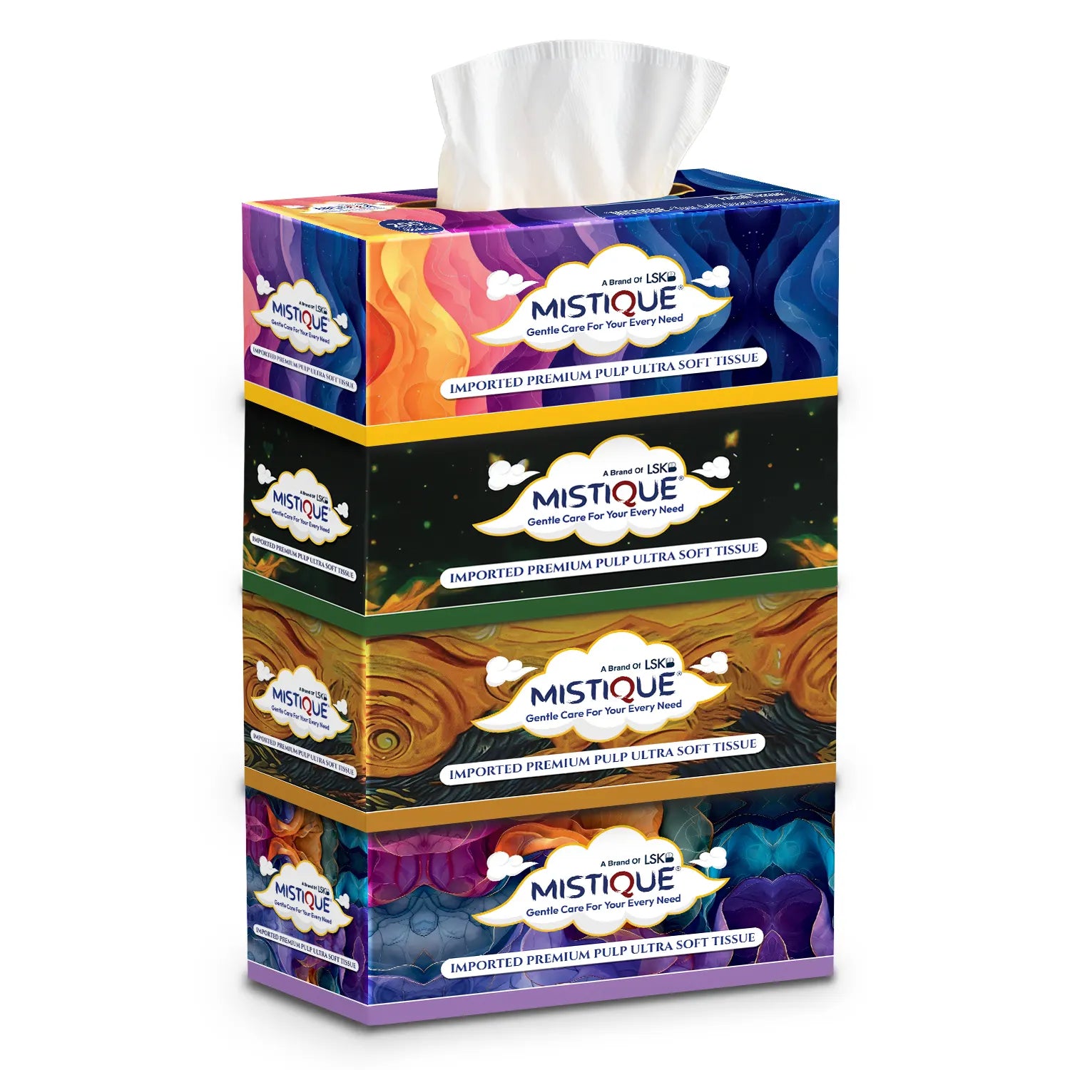 MISTIQUE 2 Ply Facial Tissue Box | Pack of 4 (100 Pulls Per Box, 200 Sheets)